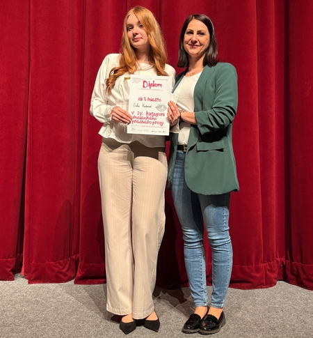 Talent, odhodlanie a cit pre umelecké slovo. Aj s tým sme šli na okresné kolo v umeleckom prednese poézie a prózy Hviezdoslavov Kubín, ktoré sa konalo dnes, 02.03.2026, v Dome kultúry v Čadci. Našu školu reprezentovali Branislav Sventek z II.AI s poéziou a Erika Kužmová z III.AT s prózou. A reprezentovali naozaj výborne, pretože Erika si vybojovala v konkurencii 1. miesto a to znamená jediné – postup na kraj do Martina! Veľmi sa tešíme, že beletria má ešte stále miesto medzi mladými ľuďmi, čoho dôkazom sú aj naši žiaci. Veríme, že Braňo získal cenné skúsenosti do budúcnosti a Erike budeme držať palce v ďalšom kole súťaže, lebo až „osemdesiat percent úspechu spočíva v tom, že sa ukážete.“ (W. Allen)